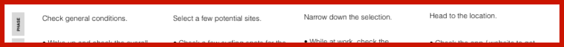 2) - 다양한 조건에 알맞은 몇몇 서핑 장소들을 점검 후 가능한 장소들을 선택한다. 장비를 챙긴다.